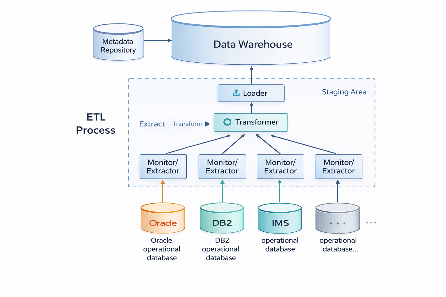 Monitors: Detect and report changes in individual sources that are relevant to the data warehouse.