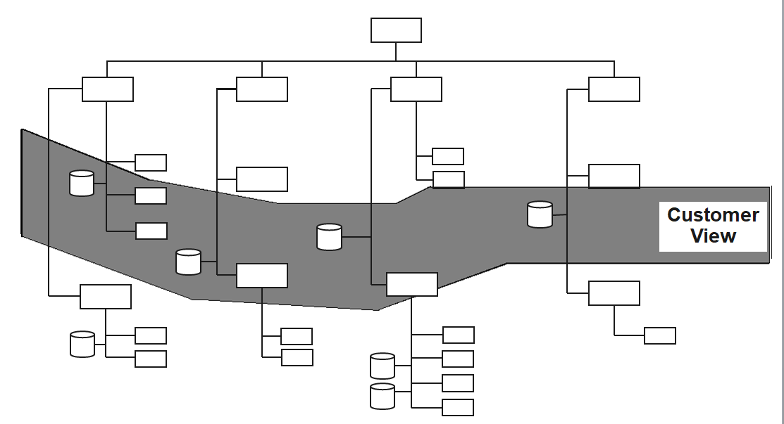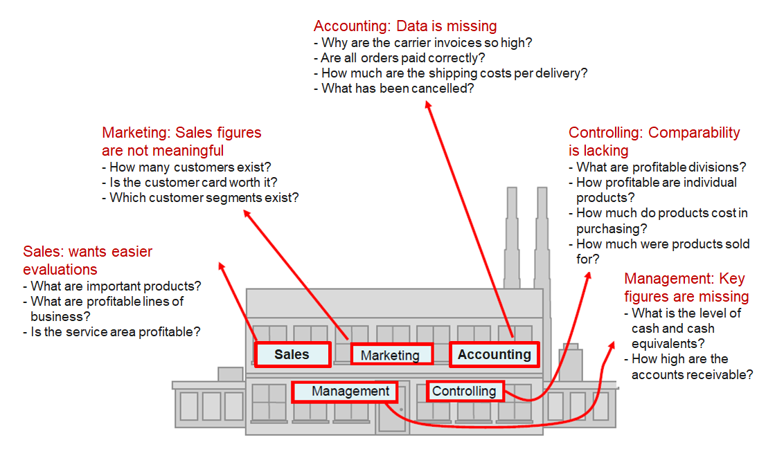 Organizations structure operational data by departments and processes, but analytical questions require cross-departmental views.