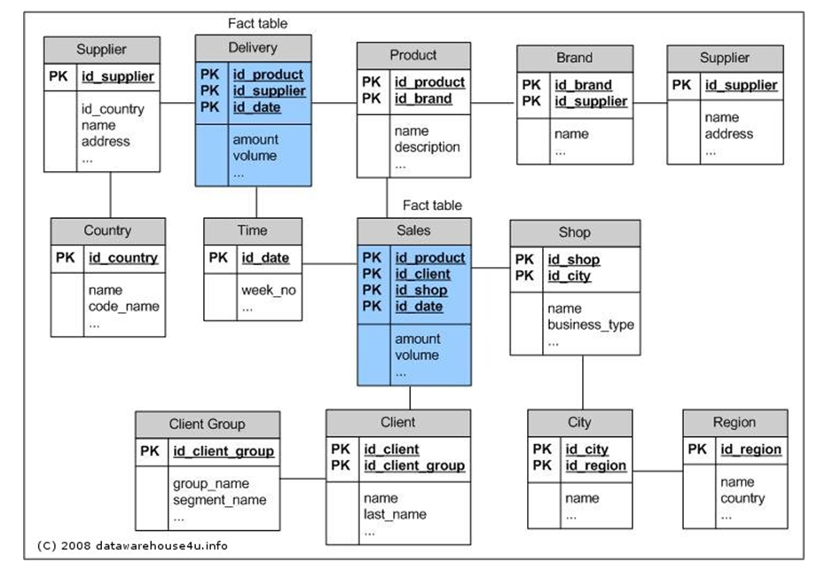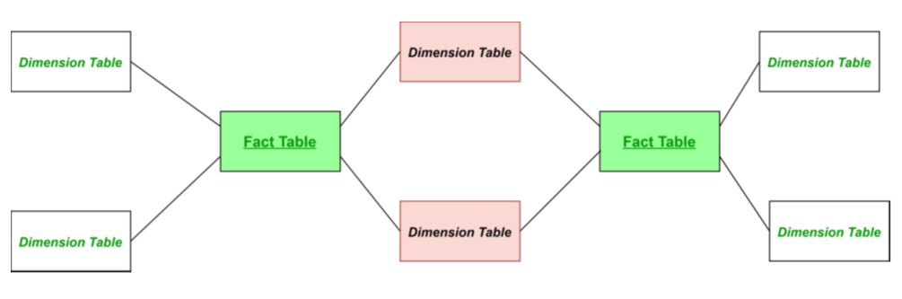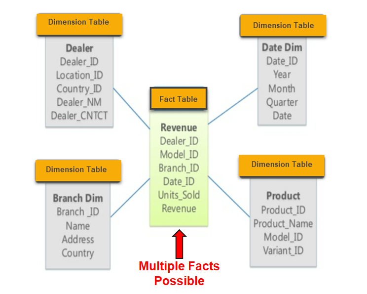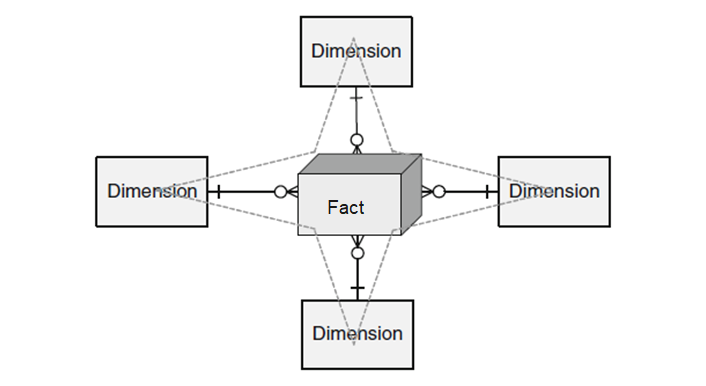 The Star schema has a central fact table and exactly one dimension table for each dimension.