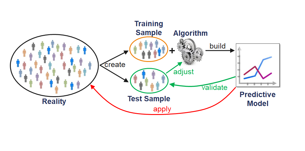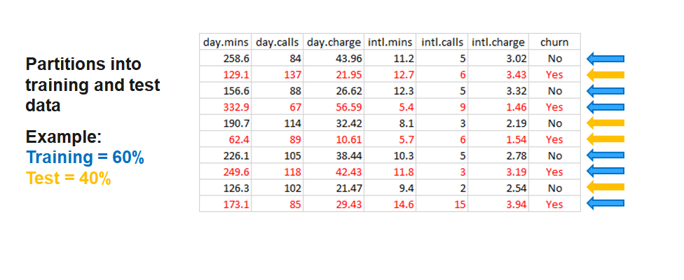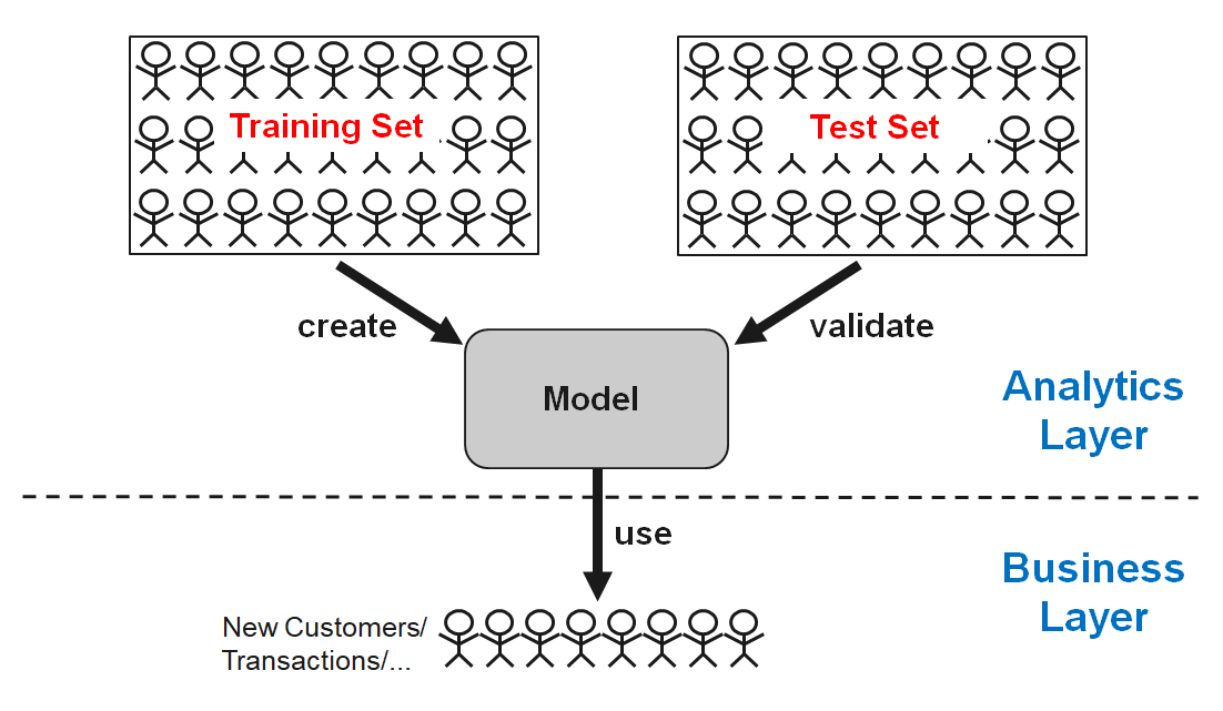The partitioning of the data in Training and Test Data has the aim to proof if the analytical results can be generalized. The analysis (e.g. the development of a classifier) is carried out on the basis of training data. Subsequently, the results are applied to the test data. If the results are significantly worse than the training data, the model is not generalizable, which is called overfitting.