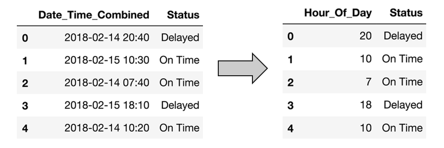 But the status of the flight may depend on the hour of the day, not on the date-time. To analyze this, we will create the new feature “Hour_Of_Day”. Using the “Hour_Of_Day” feature, the machine will learn better as this feature is directly related to the status of the flight.