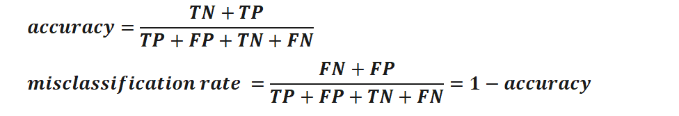 Misclassification rate and accuracy can be misleading, for example in the case of imbalanced samples. Extreme case:
