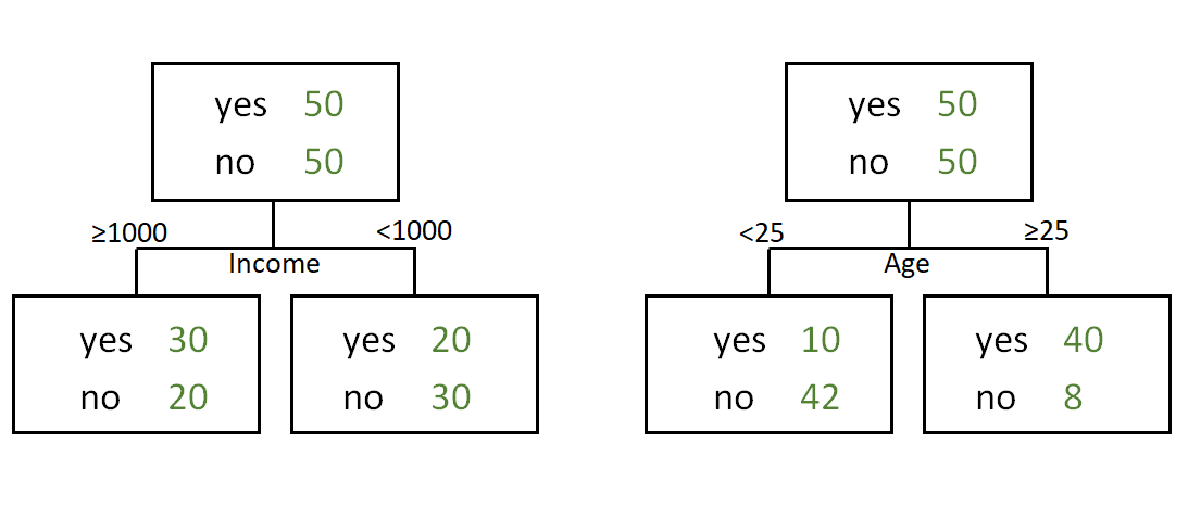| Measure used | Gini-Index | Information gain (entropy) | Ratio of information gain | Chi-square split | Optional, mostly Gini-Index |