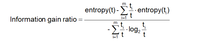 To compensate for this, C5.0 is a further development that uses the information gain ratio as a splitting criterion:
