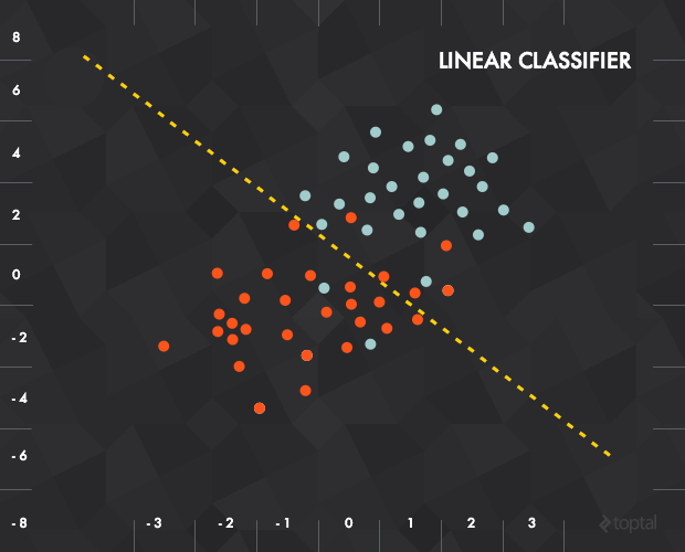 This results in a linear classifier. Finally, we have to pick a line that best separates the labeled data. The training of the perceptron consists of feeding it multiple training samples and calculating the output for each of them. After each sample, the weights w are adjusted in such a way so as to minimize the output error, defined for example as accuracy or MSE.