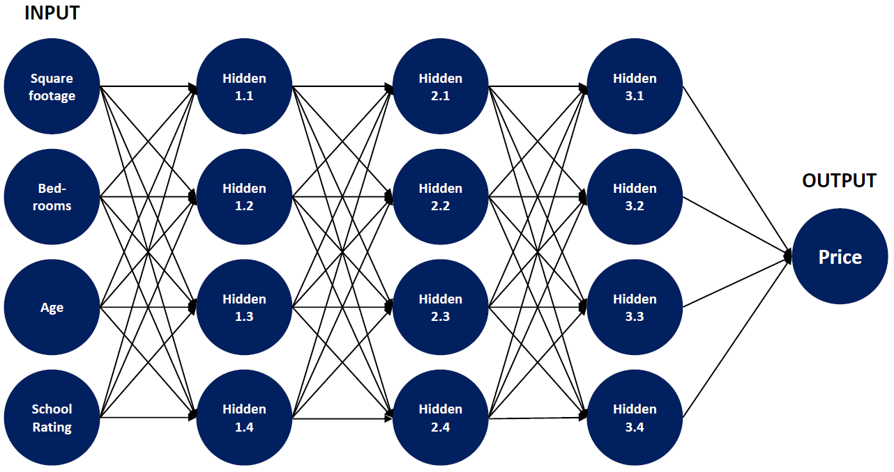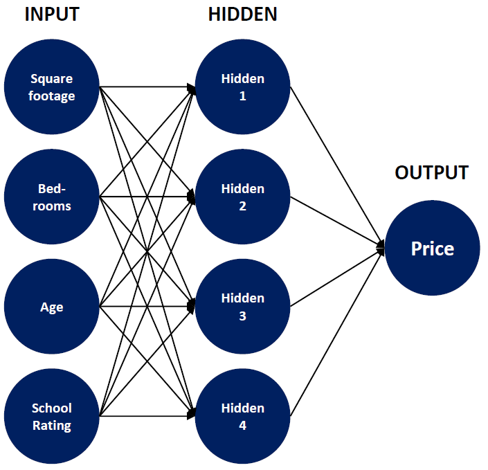 The single perceptron approach has a major drawback: it can only learn linear functions. To address this problem, we’ll need to use a multilayer perceptron, also known as feedforward neural network. Here, we add layers between the input and the output layer, so-called hidden layers. The hidden layer is where the network stores its internal abstract representation of the training data.