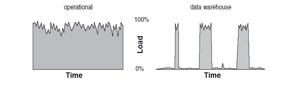 | Queries | predictable, periodic | unpredictable, ad hoc |