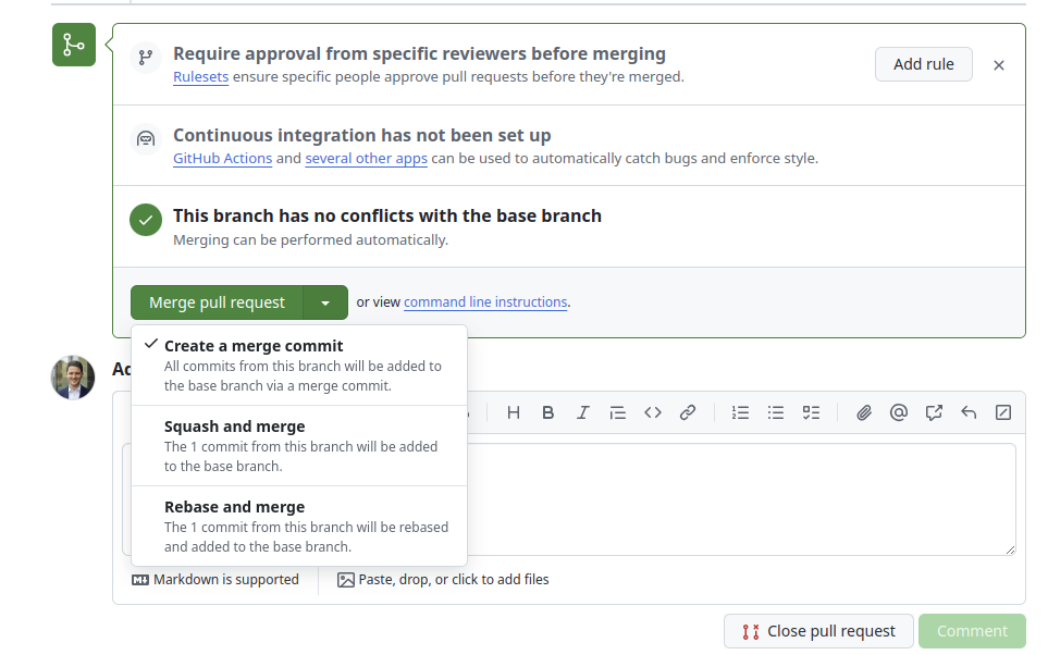 - The differences between merge commits, rebases, and squashed merges